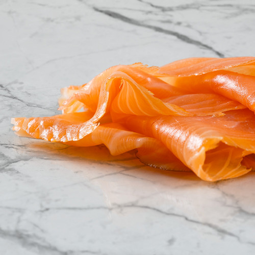 The "Planche du Traiteur" is sliced by hand, by expert slicers, into thin and long slices in order to appreciate the softness and finesse of the salmon with its slightly woody aromatic notes.